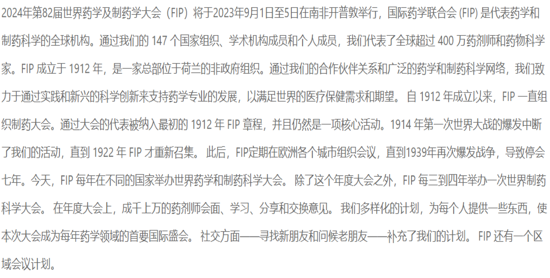 2024年第82届世界药学及制药学大会(FIP)